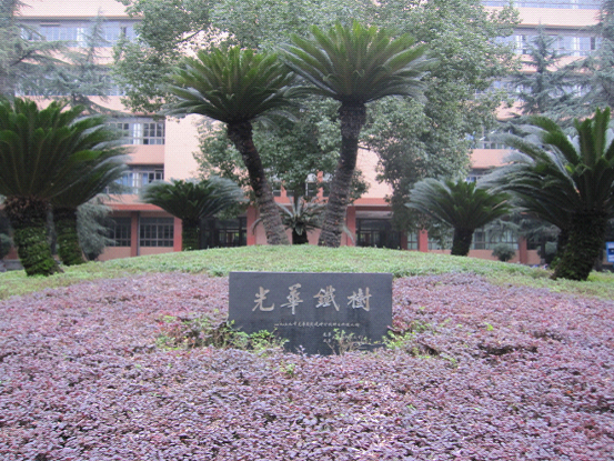 图中的这株铁树树形奇特,为“V”型,当时的师生们籍此来象征对抗战胜利的祝愿。