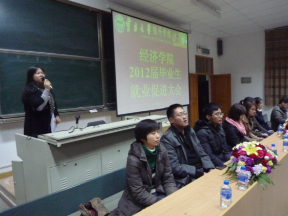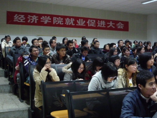 张鸣鸾学姐、牛伟学长、普雪学姐针对就业中的如何自我定位、制作个人简历、准备面试、保持自信心态等问题和同学们分享了自己的经验和看法;马杰学长、毛馨谊学姐讲述了他们成功进入银行工作的精彩求职经历;李美玲学姐介绍了她在求职过程中遇到的择业策略、就业心理调试等问题,并分享了自己克服困难的经验和技巧;孙秀学姐则和同学们分享了高效率考上研究生的一些心得体会,为准备考研的同学给出了宝贵建议。