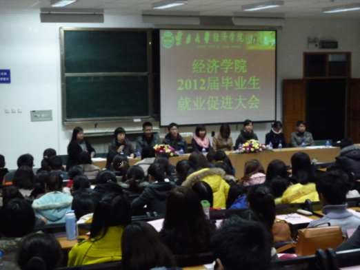 为了配合学校就业指导工作的深入开展,促进永利官网2012届毕业生顺利就业,提高毕业生就业的成功率和就业质量,永利集团3044官网欢迎您于12月6日晚19点在文渊楼501召开了2012届毕业生就业促进大会。院党委副书记、院学生工作领导小组组长李娟老师、院团委书记、研究生辅导员丁江辉老师和院党办副主任、2008级本科生辅导员崔庆波老师出席会议,永利集团3044官网欢迎您全体2012届毕业本科生和研究生参加了此次就业促进大会。本次就业促进大会由李娟老师主持,邀请到了近年来表现突出并成功就业的优秀毕业生代表张鸣鸾、牛伟、马杰、毛馨谊、李美玲、普雪、孙秀等七位学长与广大2012届毕业生分享成功经验,为学弟学妹们答疑解惑。