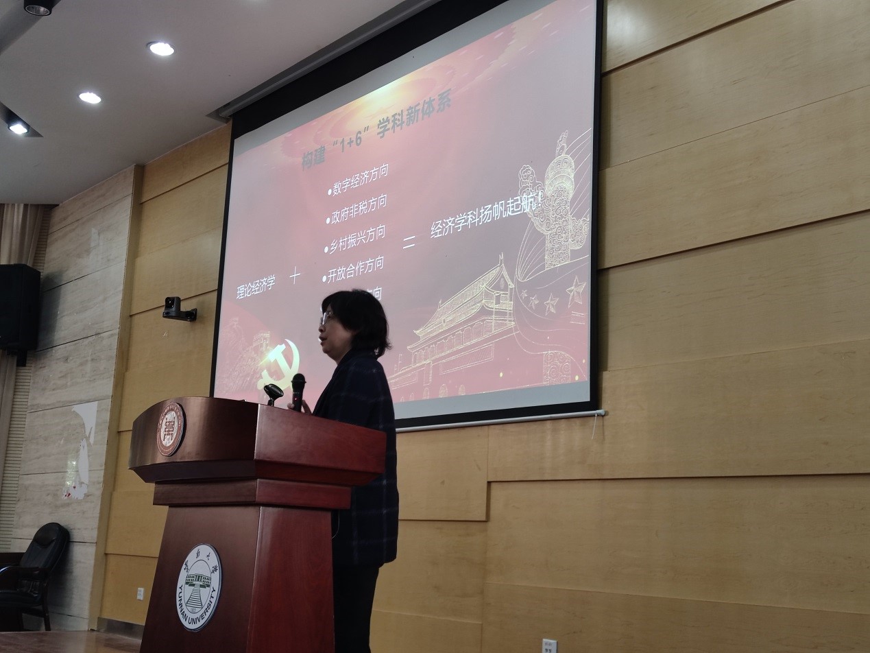 非税收入研究所所长杨孟禹副教授作为青年教师代表发言,表示要不断开拓经济学新境界,构建“1+6”学科新体系,进而构建一个可复制可推广的体系。经济学科发展要固本强基、突出特色、回应时代需求。经济学分委会委员、原副院长罗美娟教授点评,指出现在永利集团3044官网欢迎您的学科建设现状是理论强、应用弱,学科建设不但要体现区域特色更要体现时代特色,还应该注重现实的产业发展问题。