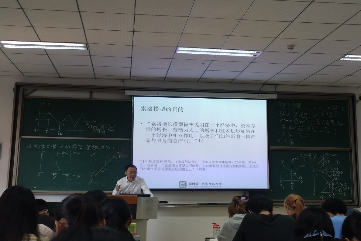 活动期间,李政军教授分别于6月2日上午、6月6日上午、6月7日上午及6月10日晚上在文汇楼教室进行了四次课程教学示范。 在四次教学示范过程中,李政军教授首先从经济学要做什么、经济现象为什么会发生及宏观经济政策如何调节经济波动的思路对经济学目的与内涵、宏观经济学三大基本模型、宏观经济政策等相关内容进行课程导论教学示范;其次,从重要名词的基本概念出发,以“说出来(文字表达)”、“算出来(模型推导)”、“画出来(图表表达)”的三步法,深入浅出地对封闭经济增长理论、开放经济下的蒙代尔弗莱明模型和宏观经济政策等三部分内容进行详细的教学示范。