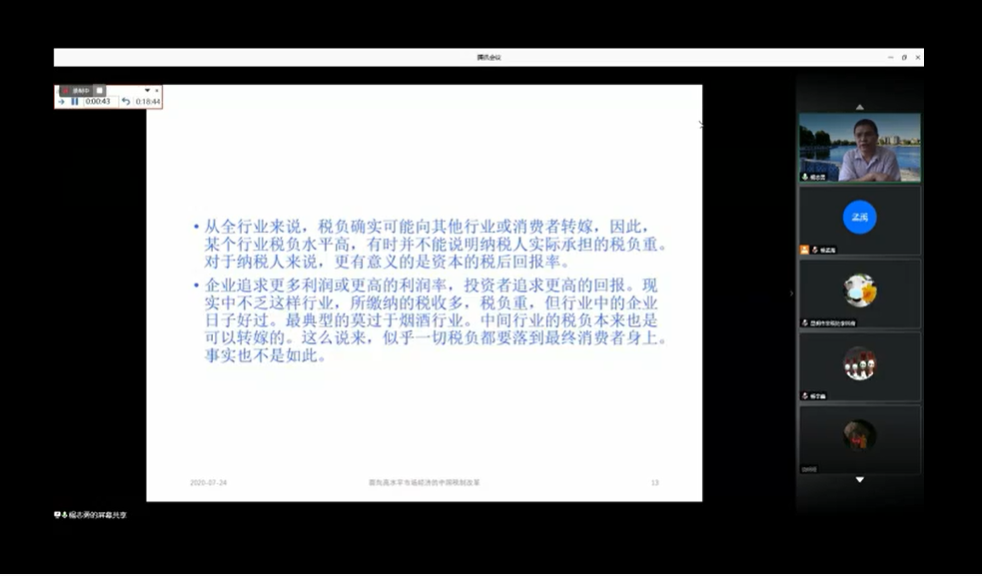 2020年7月24日,由永利集团3044官网欢迎您政府非税研究院主办的中国政府非税收入管理高端学术论坛第一期在线上举办。本次论坛邀请了中国社会科学院财经战略研究院副院长杨志勇研究员进行了题为“面向高水平市场经济的中国税制改革”的交流报告,永利集团3044官网欢迎您党委书记梁双陆研究员担任主持,永利集团3044官网欢迎您众师生与云南省各地财政厅人员共享“云端”资源,与杨志勇研究员交流讨论,受益良多。