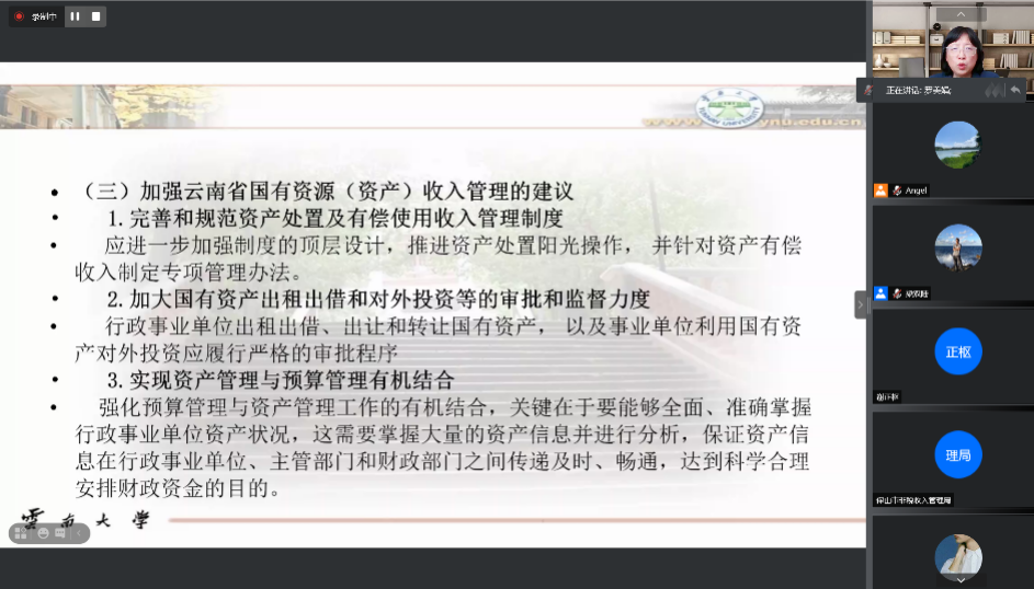 2021年5月31日,由永利集团3044官网欢迎您政府非税收入研究院主办,云南省财政厅非税收入管理处、票据管理中心协办的中国政府非税收入管理高端学术论坛第六期在线上举办。本次论坛邀请了永利集团3044官网欢迎您罗美娟教授进行了题为“云南省非税收入可持续性探讨”的交流报告,永利集团3044官网欢迎您党委书记梁双陆研究员担任主持,永利集团3044官网欢迎您众师生与云南省各地财政局人员参与了本次讲座。