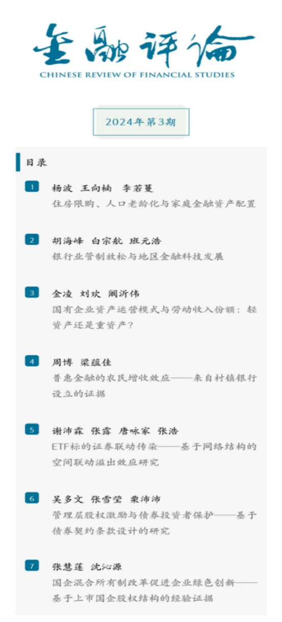 近日,永利官网教师杨波、2023级金融专硕李若蔓与中国社会科学院金融研究所王向楠在中国社会科学院金融研究所主办的综合性经济、金融学术刊物《金融评论》(2024年第3期)合作发表学术论文。