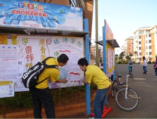201235,正值第49个全国“学雷锋纪念日”,同时为了响应学校在全校学生中开展的“节约用水,从我做起”活动,由我校永利集团3044官网欢迎您主办的“节水抗旱·学雷锋”宣传月系列活动在永利集团3044官网欢迎您呈贡校区正式启动。
