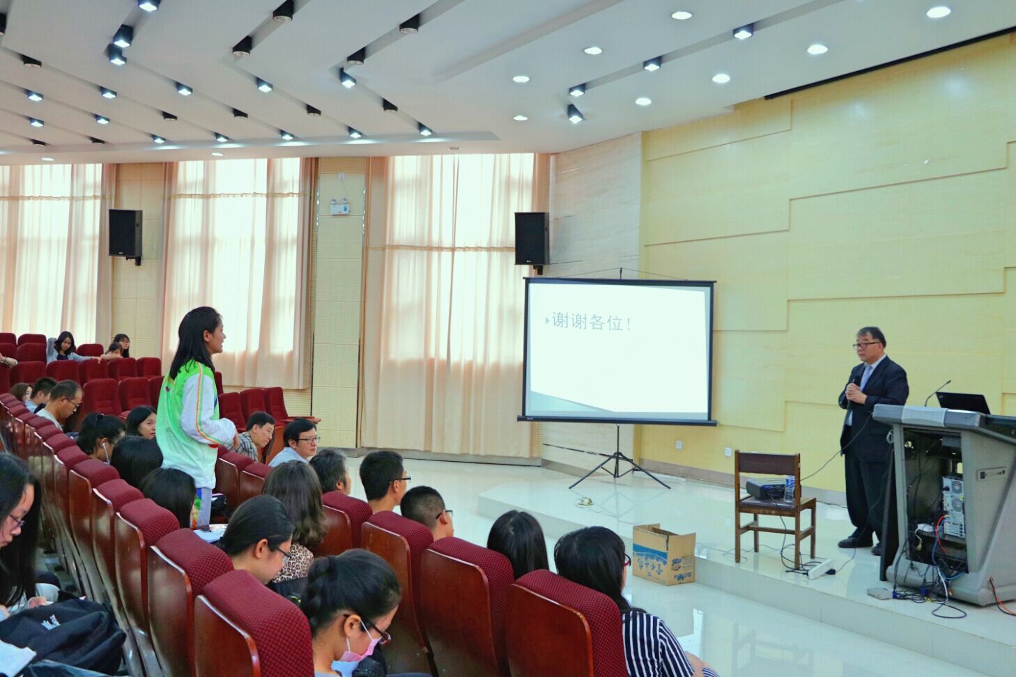 互动环节中,同学们在认真对张教授所讲授的内容进行归纳后提出了许多颇具想法的问题。其中,最令人影响深刻的是一个是“教授,您如何看待日媒对中国游客负面行为过度曝光的现状?”对于这个问题,张教授结合自身经历进行讲解,通过形象的例子,明确的指出媒体的影响力巨大,一味轻信媒体舆论,不利于人民综合素质的提升,不利于国家的持续发展。张教授幽默、有深度又不乏激情的回答将全场氛围推至高潮,掌声迭起不断。