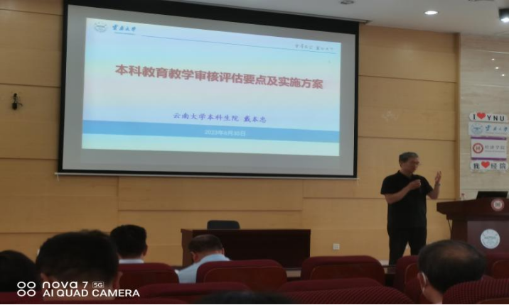 新一轮本科教育教学审核评估是落实立德树人根本任务、办人民满意的教育的要求,是推动本科教育教学改革、落实人才培养质量最后一公里的有效抓手,是深化高等教育评估改革、建设中国特色高等教育评估制度体系的需要。戴本忠副院长详细讲解了:新一轮审核评估的指导思想、新一轮评估方案的主要内容、审核评估内涵和外延的新变化、参评高校及类型选择、指标体系的新变化、新一轮审核评估评审材料报告、评估程序、评估实施方案、工作任务及进度安排、报告撰写要求、重要文件、教学检查及存在的问题等方面的内容。